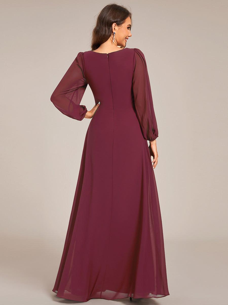ever TRU|Robe de soirée élégante en mousseline de soie à manches longues et plissée