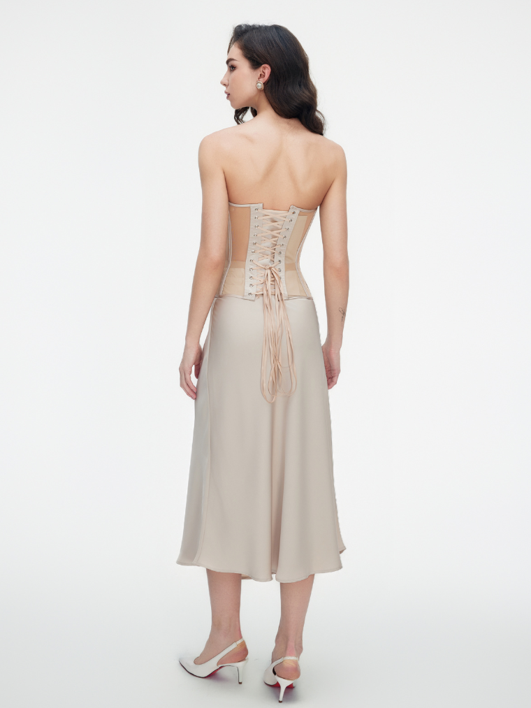 Révélant toute sa séduction et son élégance, le corset à empiècements transparents promet un look saisissant. Confectionné en résille de qualité, il allie durabilité et confort, tandis que le bustier à armatures épaisses et la coupe allongée assurent un maintien parfait et une silhouette harmonieuse. Le laçage au dos ajoute non seulement une touche de style, mais permet également d’ajuster la taille selon vos préférences. Quelle que soit la couleur que vous choisissez – noir, blanc ou beige – ce corset deviendra une pièce incontournable de votre garde-robe, soulignant votre féminité et votre charme à chaque pas.
